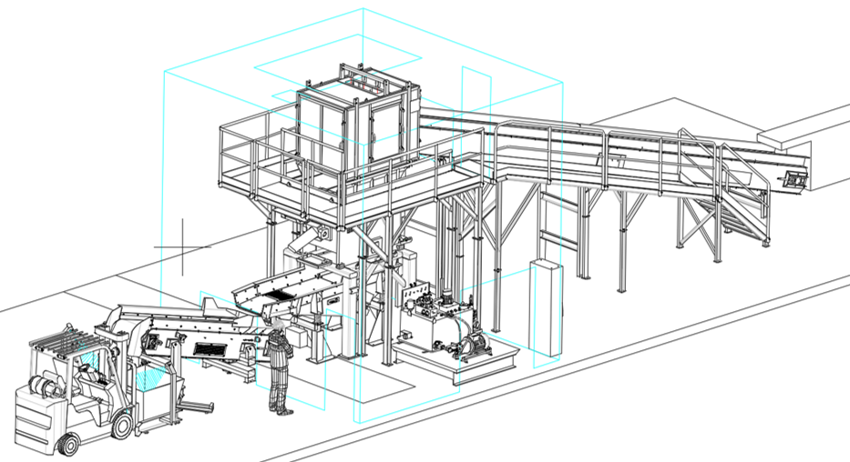 Runner Breaker está diseñado para romper bebederos de hierro nodular, gris y aluminio y reducir su volumen a un 65% de su tamaño inicial.